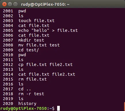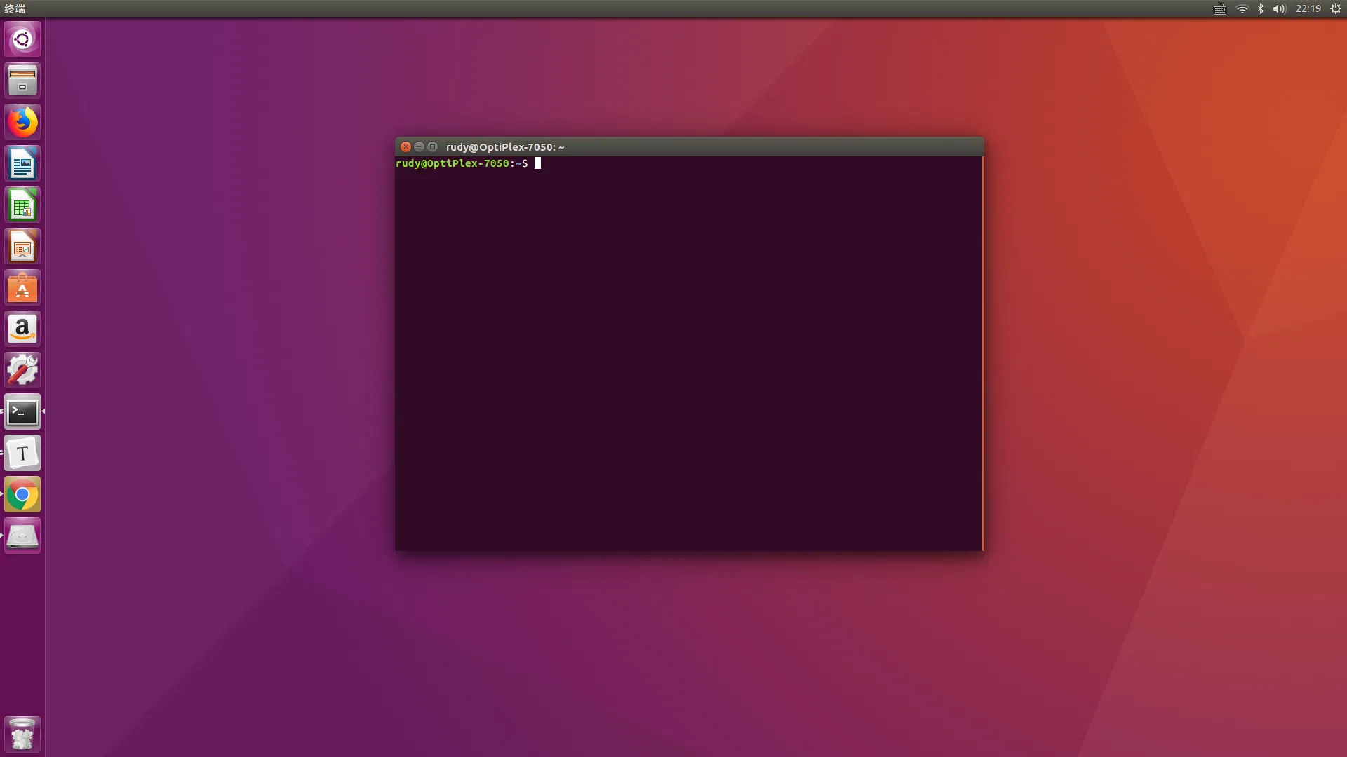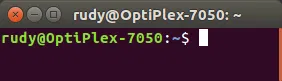 其中,rudy 是当前登录的用户名称,OptiPlex-7050 是机器的名称,它们之间有一个 @ 符号隔开,接着后面有个冒号,冒号后面有个蓝色的~符号,表示当前操作的位置是在家目录(也就是 rudy 用户专属的文件夹),最后还有一个 $ 符,它在提醒你 “现在你可以输入命令啦”。大胆地输入命令吧,别忘了最后还要敲回车键(Enter 键)通知电脑你已经输入完毕了!