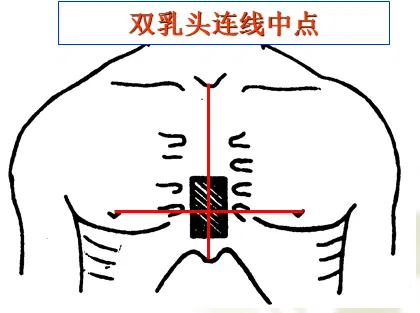 - 按压胸部。 双手掌根重叠,在伤员胸部正中乳头连线中点垂直向下按压,频率每分钟至少 100 次,按压深度 4-6 厘米,连续按压 30 次。