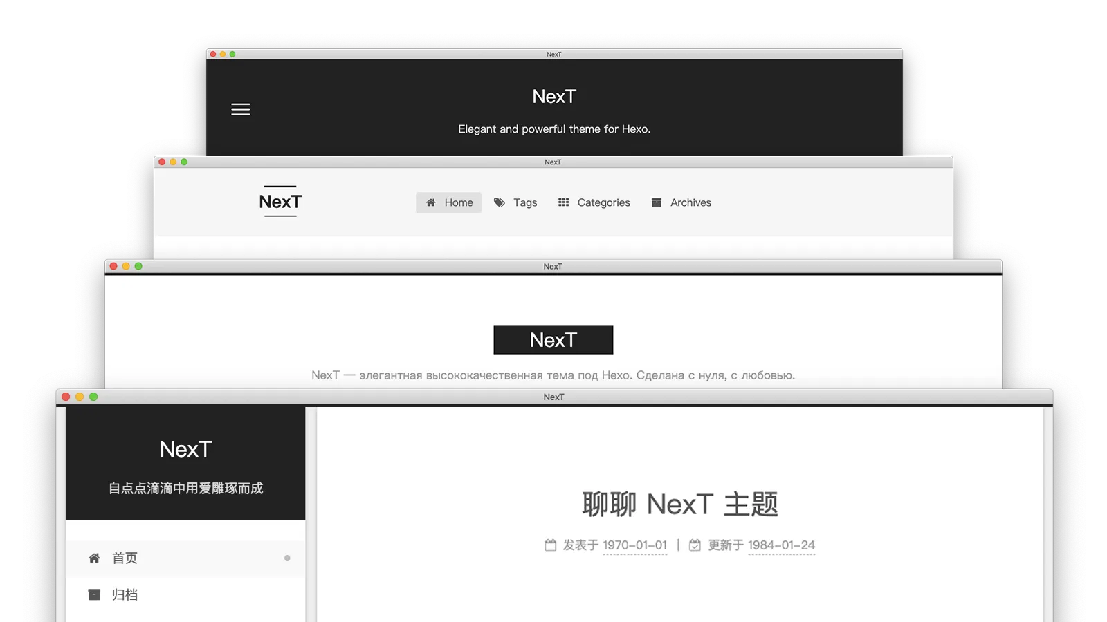 NexT 主题的特点是简洁,提供三种外观风格,但同时也功能齐全,而且插件丰富,因此是 Hexo 主题中非常流行的一个。
