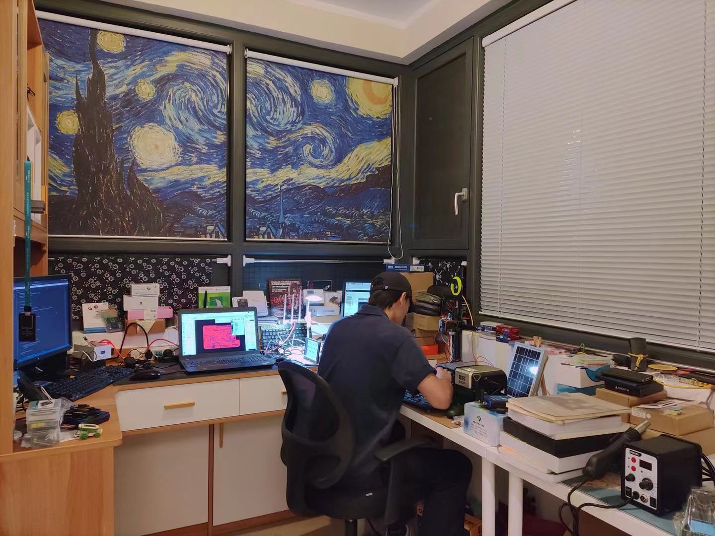 而最小的一个房间暂时被用作工作室了,是我在家办公、写代码、做硬件和瞎折腾的主要场所。因为是阳光房,光线超好,所以装了百叶窗让它显得更像是工作场所。而动静结合的设计方案,也保留了以后改成了卧室的可能性。
