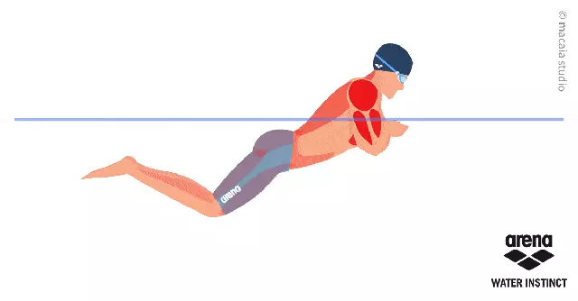 做好夹肘动作,蛙泳泳姿会更加优美,泳速也会得到进一步提升。夹肘是内划动作的最后阶段,两肘距离小于肩宽,是内划抱水(向胸前抱水)要求的结果,夹肘要快速有力。