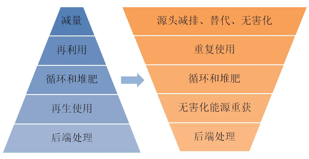 (右)有利于循环经济的垃圾管理序列
