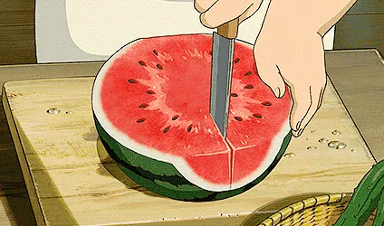 咳咳,敲黑板!上面的切法是错误的,因为蜂蜡布很难将西瓜完全包裹。所以应该横着切,有利于保存西瓜内部水分,横切面包裹起来也方便多了。