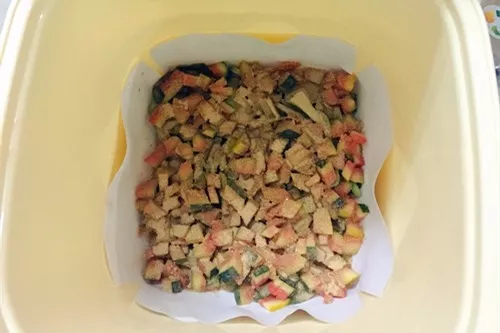 把瓜皮和瓜籽收集起来,如果采用波卡西堆肥,瓜皮要稍微切小块点,以增加表面积,有利于微生物分解。